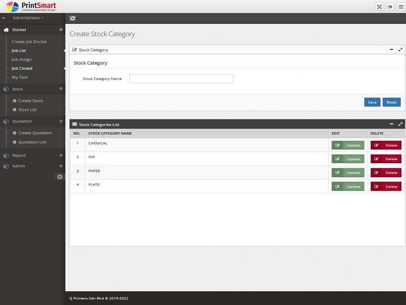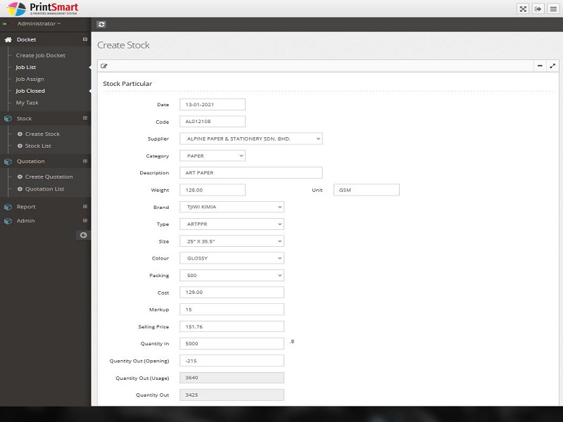 Printing management is important in handling work activities, printing stock, quotes and reports. Therefore, this product comes with modules such as :