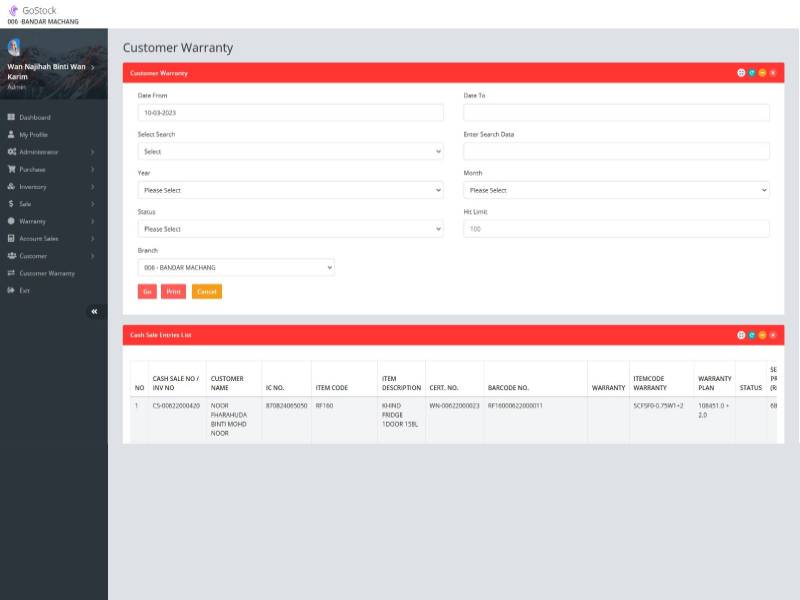 - Product Name: GoStock System