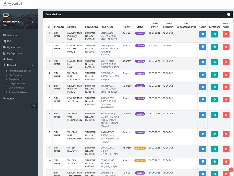 The presence of this Helpdesk Solution application is a set of procedures used in organizations to deal with complaints and resolve disputes. The application can also manage, respond and report customer complaints. This process requires a streamlined approach and continuous monitoring to ensure faster resolution. Therefore, this product comes with modules such as :